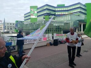 Le mercredi 29 mars (voir l’annonce) nous nous sommes rassemblé·es à une petite centaine devant la préfecture avec les signataires de la lettre ouverte relative au projet de Cité scolaire. Elle est signée par le CPTG, des associations, des élu·es, des syndicats d’enseignant.es, des médecins soulignant l’absurdité d’installer une cité scolaire sous le bruit des avions sur le Triangle de Gonesse.