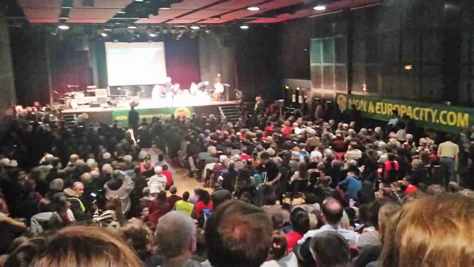 1300 personnes présentes, une salle Olympe de Gouges pleine à craquer pour assister au meeting « Terres fertiles contre projet stérile … toute la vérité sur les projets CARMA et EuropaCity »